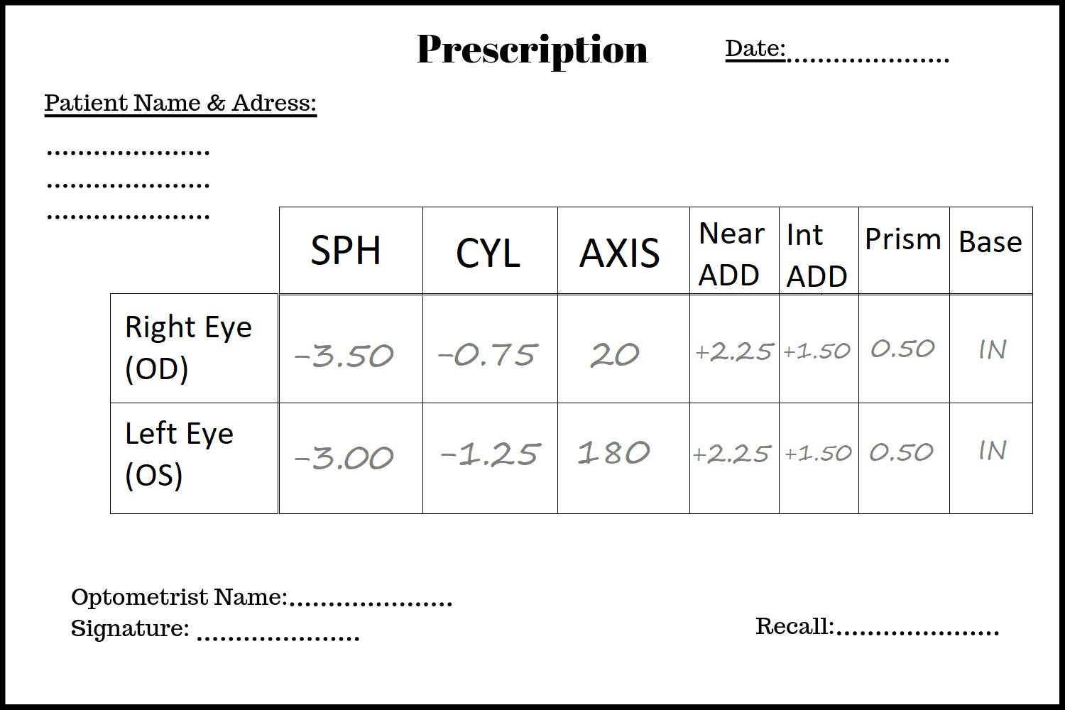In order for a prescription to be valid and used to make glasses, there are specific key information that needs to be filled out: