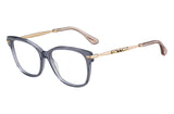 The Choo Glasses collection by Jimmy Choo is a refined take on the logomania trend. Featuring solid and transparent colour combinations, these fashion-forward styles are characterised by the eye-catching logo and materials used.